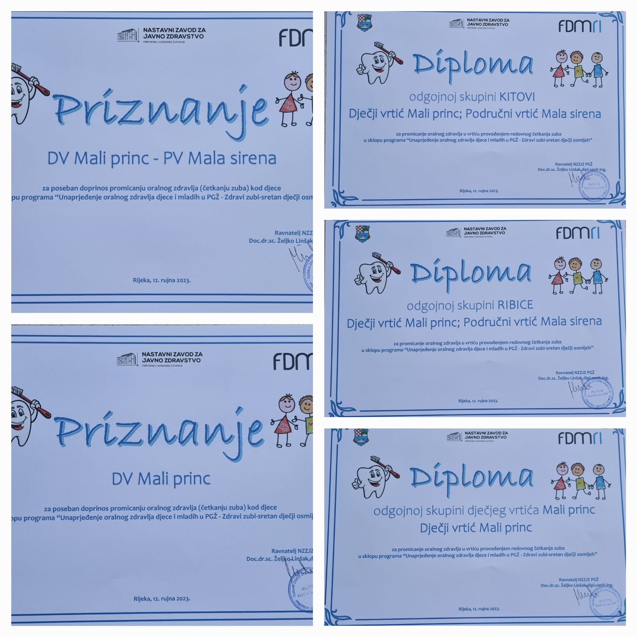 Europski dan oralnog zdravlja obilježen je dodjelom diploma svim našim skupinama i priznanja za promicanje četkanja zubića u vrtiću. Zdravi zubi sretan dječji osmjeh.